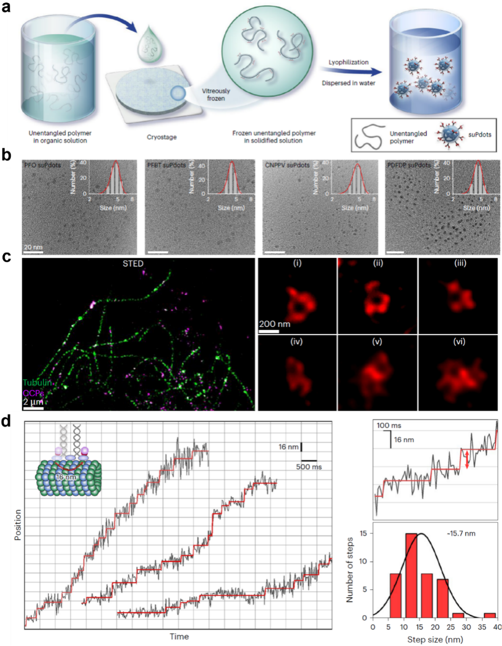 在生命科学研究领域,实现生物分子的纳米尺度原位动态成像,是揭示生命过程分子机制、推动精准医学发展与创新药物研发的关键技术支撑。然而,当前常用的荧光分子探针(如有机染料、荧光蛋白)普遍存在荧光强度不足、光稳定性较差的问题,难以满足高时空分辨率下追踪单个生物分子动态变化的研究需求;另一方面,虽有高亮度、高稳定性的荧光纳米颗??捎茫涑叽缤ǔ4笥?0纳米,且表面修饰过程复杂且难以精准调控,导致无法实...